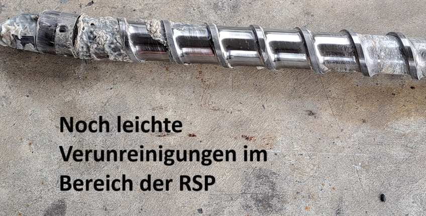 Nach der 2. Reinigung ist die Schnecke komplett sauber, daher sollte künftig bei spezieller Reinigung mit der doppelten Menge gearbeitet werden.